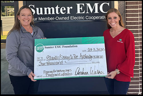 The Sumter EMC Foundation recently awarded the Ellaville/Schley County Recreation Authority $5,000 for improvements to the playground area and turf flooring for batting cages.