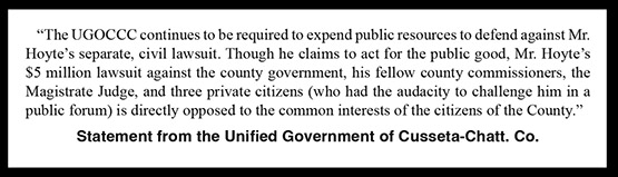 Commissioner Damon Hoyte sued the Commission of the Unified Government of Cusseta-Chat...